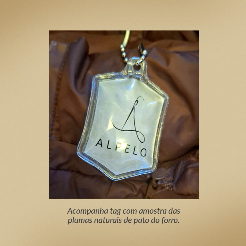 Acompanha tag com amostra das plumas naturais de pato do forro.