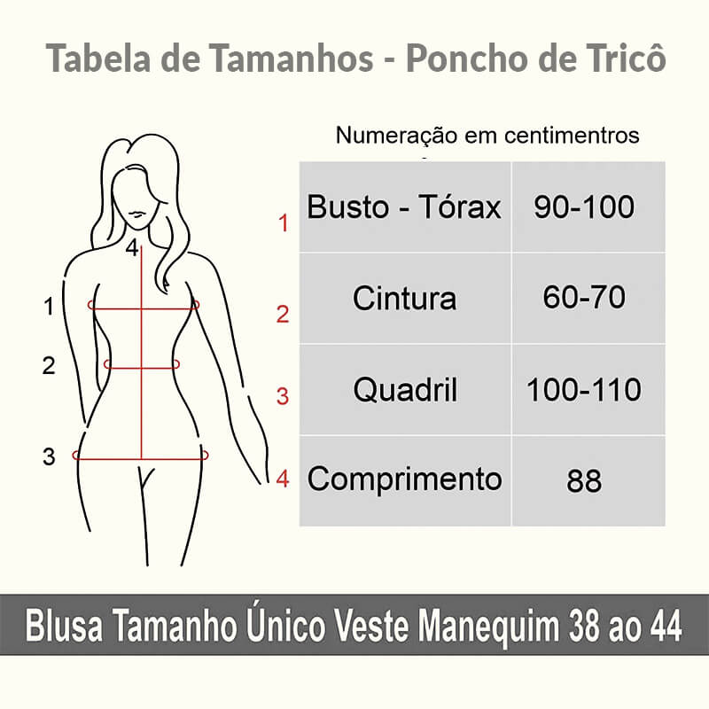 • Tamanho Único: veste do manequim 40 ao 46.